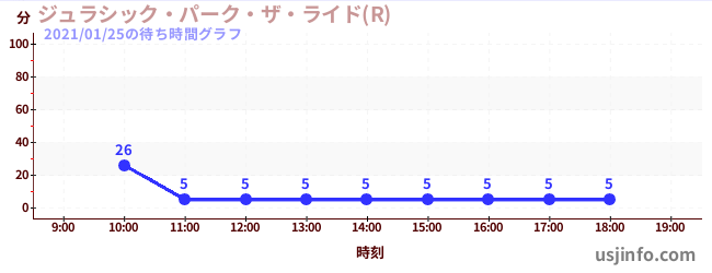 • ジュラシック・パーク・ザ・ライド(R)$B$N(B2021年01月25日の待ち時間