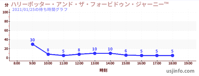 • ハリーポッター・アンド・ザ・フォービドゥン・ジャーニー™$B$N(B2021年01月25日の待ち時間