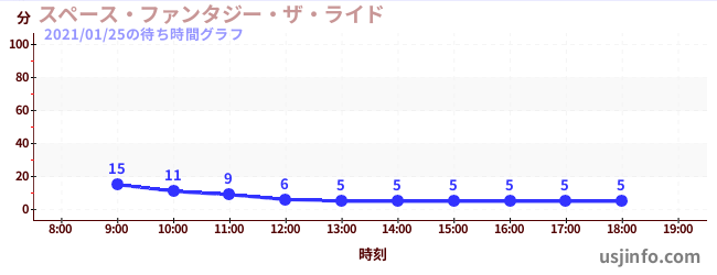 • スペース・ファンタジー・ザ・ライド$B$N(B2021年01月25日の待ち時間