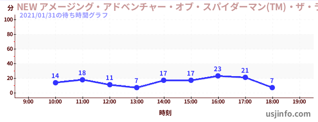 • NEW アメージング・アドベンチャー・オブ・スパイダーマン(TM)・ザ・ライド 4K3D$B$N(B2021年01月31日の待ち時間