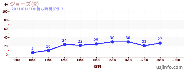 • ジョーズ(R)$B$N(B2021年01月31日の待ち時間