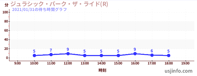 • ジュラシック・パーク・ザ・ライド(R)$B$N(B2021年01月31日の待ち時間
