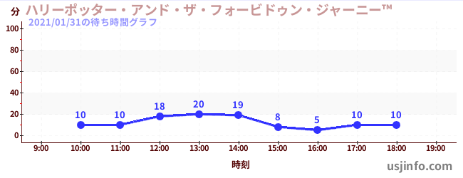 • ハリーポッター・アンド・ザ・フォービドゥン・ジャーニー™$B$N(B2021年01月31日の待ち時間
