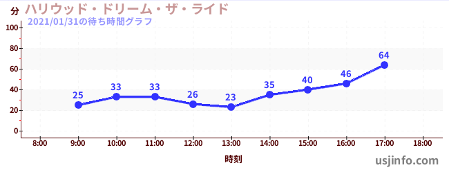 • ハリウッド・ドリーム・ザ・ライド$B$N(B2021年01月31日の待ち時間