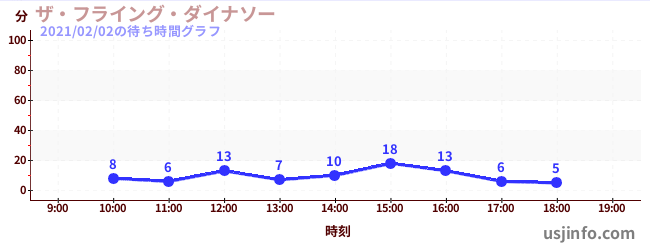 • ザ・フライング・ダイナソー$B$N(B2021年02月02日の待ち時間