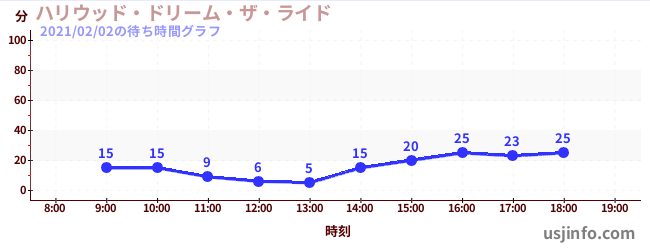 • ハリウッド・ドリーム・ザ・ライド$B$N(B2021年02月02日の待ち時間