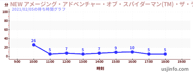 • NEW アメージング・アドベンチャー・オブ・スパイダーマン(TM)・ザ・ライド 4K3D$B$N(B2021年02月05日の待ち時間