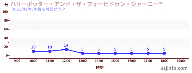 • ハリーポッター・アンド・ザ・フォービドゥン・ジャーニー™$B$N(B2021年02月05日の待ち時間
