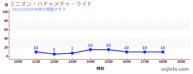 • ミニオン・ハチャメチャ・ライド$B$N(B2021年02月05日の待ち時間