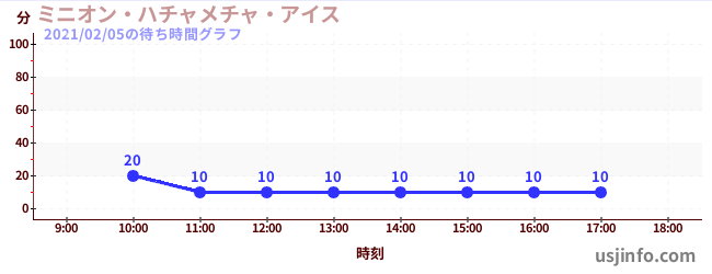 • ミニオン・ハチャメチャ・アイス$B$N(B2021年02月05日の待ち時間