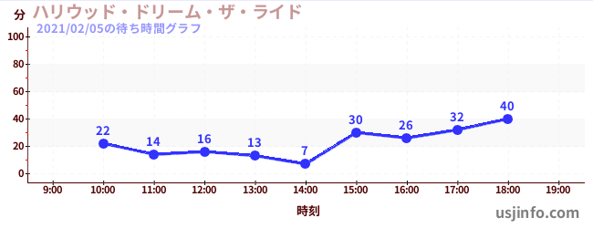 • ハリウッド・ドリーム・ザ・ライド$B$N(B2021年02月05日の待ち時間