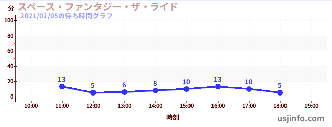 • スペース・ファンタジー・ザ・ライド$B$N(B2021年02月05日の待ち時間