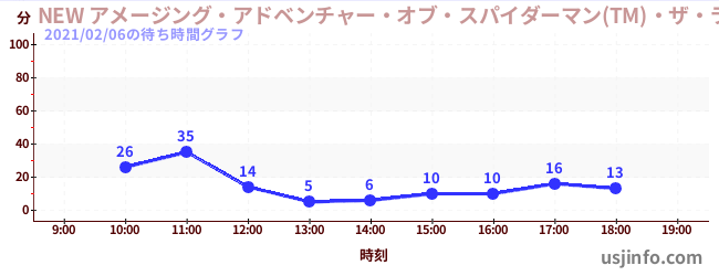 • NEW アメージング・アドベンチャー・オブ・スパイダーマン(TM)・ザ・ライド 4K3D$B$N(B2021年02月06日の待ち時間