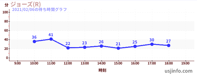 • ジョーズ(R)$B$N(B2021年02月06日の待ち時間