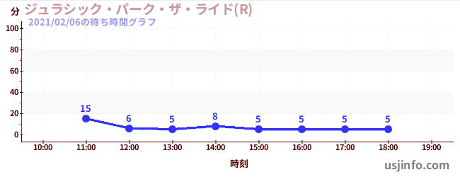 • ジュラシック・パーク・ザ・ライド(R)$B$N(B2021年02月06日の待ち時間