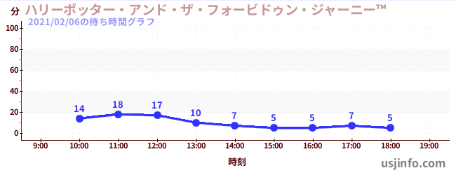 • ハリーポッター・アンド・ザ・フォービドゥン・ジャーニー™$B$N(B2021年02月06日の待ち時間