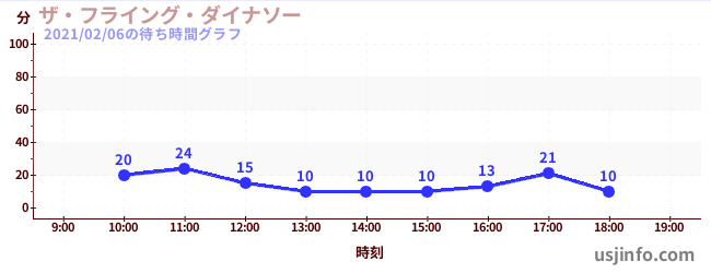 • ザ・フライング・ダイナソー$B$N(B2021年02月06日の待ち時間