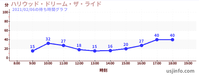 • ハリウッド・ドリーム・ザ・ライド$B$N(B2021年02月06日の待ち時間