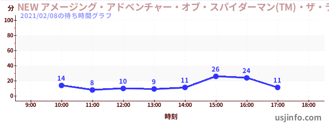 • NEW アメージング・アドベンチャー・オブ・スパイダーマン(TM)・ザ・ライド 4K3D$B$N(B2021年02月08日の待ち時間