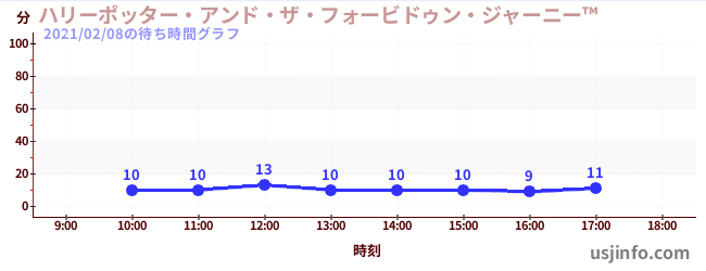 • ハリーポッター・アンド・ザ・フォービドゥン・ジャーニー™$B$N(B2021年02月08日の待ち時間