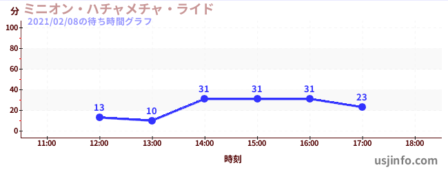 • ミニオン・ハチャメチャ・ライド$B$N(B2021年02月08日の待ち時間