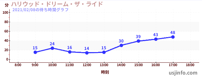 • ハリウッド・ドリーム・ザ・ライド$B$N(B2021年02月08日の待ち時間