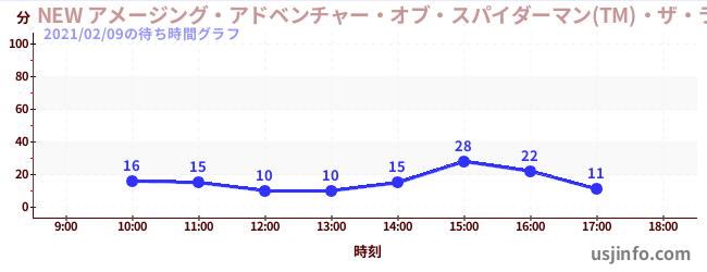 • NEW アメージング・アドベンチャー・オブ・スパイダーマン(TM)・ザ・ライド 4K3D$B$N(B2021年02月09日の待ち時間