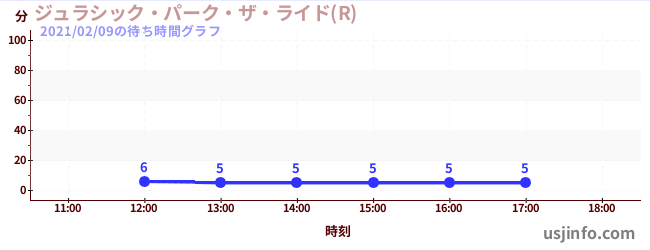 • ジュラシック・パーク・ザ・ライド(R)$B$N(B2021年02月09日の待ち時間
