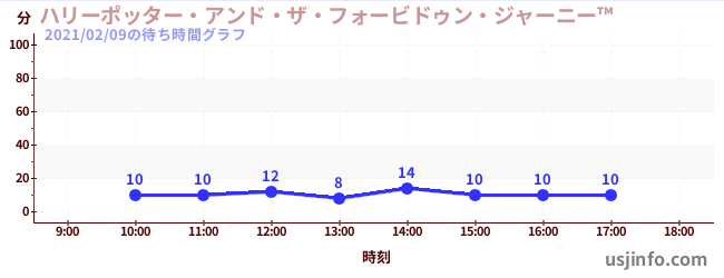 • ハリーポッター・アンド・ザ・フォービドゥン・ジャーニー™$B$N(B2021年02月09日の待ち時間