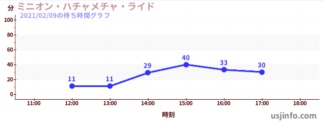 • ミニオン・ハチャメチャ・ライド$B$N(B2021年02月09日の待ち時間