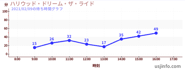 • ハリウッド・ドリーム・ザ・ライド$B$N(B2021年02月09日の待ち時間