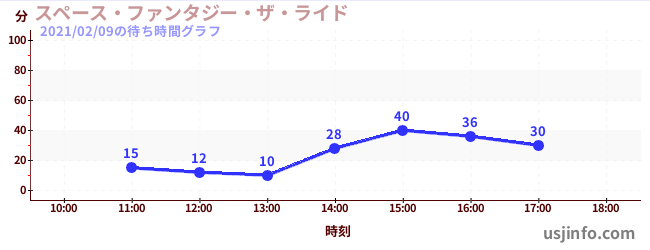 • スペース・ファンタジー・ザ・ライド$B$N(B2021年02月09日の待ち時間