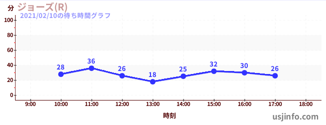 • ジョーズ(R)$B$N(B2021年02月10日の待ち時間