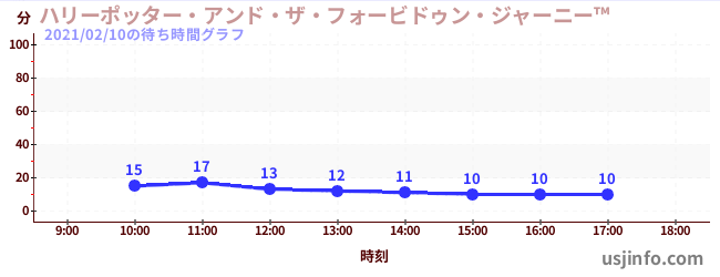 • ハリーポッター・アンド・ザ・フォービドゥン・ジャーニー™$B$N(B2021年02月10日の待ち時間