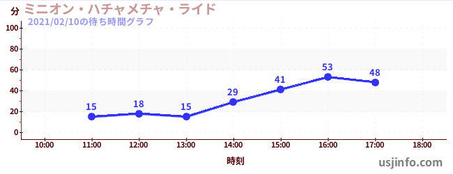 • ミニオン・ハチャメチャ・ライド$B$N(B2021年02月10日の待ち時間