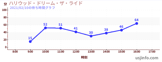 • ハリウッド・ドリーム・ザ・ライド$B$N(B2021年02月10日の待ち時間