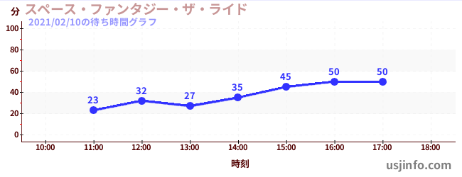 • スペース・ファンタジー・ザ・ライド$B$N(B2021年02月10日の待ち時間