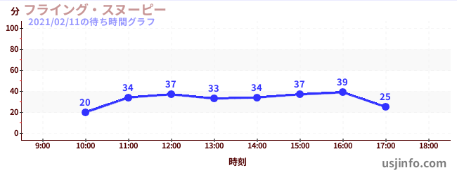 • フライング・スヌーピー$B$N(B2021年02月11日の待ち時間