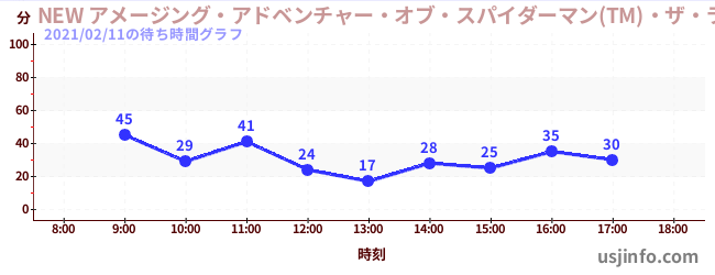 • NEW アメージング・アドベンチャー・オブ・スパイダーマン(TM)・ザ・ライド 4K3D$B$N(B2021年02月11日の待ち時間