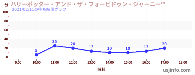 • ハリーポッター・アンド・ザ・フォービドゥン・ジャーニー™$B$N(B2021年02月11日の待ち時間