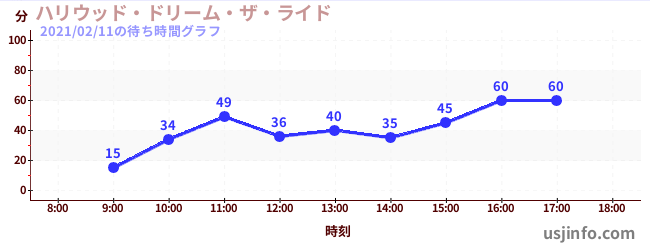 • ハリウッド・ドリーム・ザ・ライド$B$N(B2021年02月11日の待ち時間