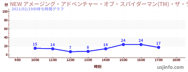 • NEW アメージング・アドベンチャー・オブ・スパイダーマン(TM)・ザ・ライド 4K3D$B$N(B2021年02月19日の待ち時間