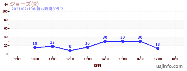 • ジョーズ(R)$B$N(B2021年02月19日の待ち時間