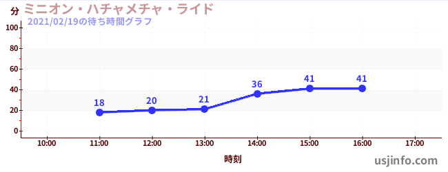 • ミニオン・ハチャメチャ・ライド$B$N(B2021年02月19日の待ち時間