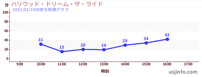 • ハリウッド・ドリーム・ザ・ライド$B$N(B2021年02月19日の待ち時間
