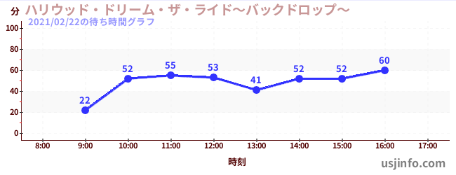 • ハリウッド・ドリーム・ザ・ライド〜バックドロップ〜$B$N(B2021年02月22日の待ち時間