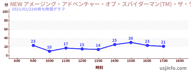 • NEW アメージング・アドベンチャー・オブ・スパイダーマン(TM)・ザ・ライド 4K3D$B$N(B2021年02月22日の待ち時間