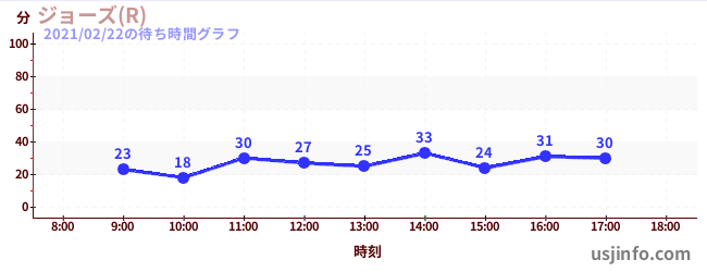 • ジョーズ(R)$B$N(B2021年02月22日の待ち時間