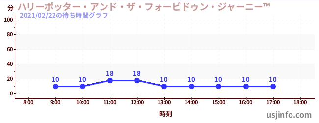 • ハリーポッター・アンド・ザ・フォービドゥン・ジャーニー™$B$N(B2021年02月22日の待ち時間