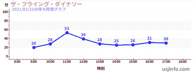 • ザ・フライング・ダイナソー$B$N(B2021年02月22日の待ち時間